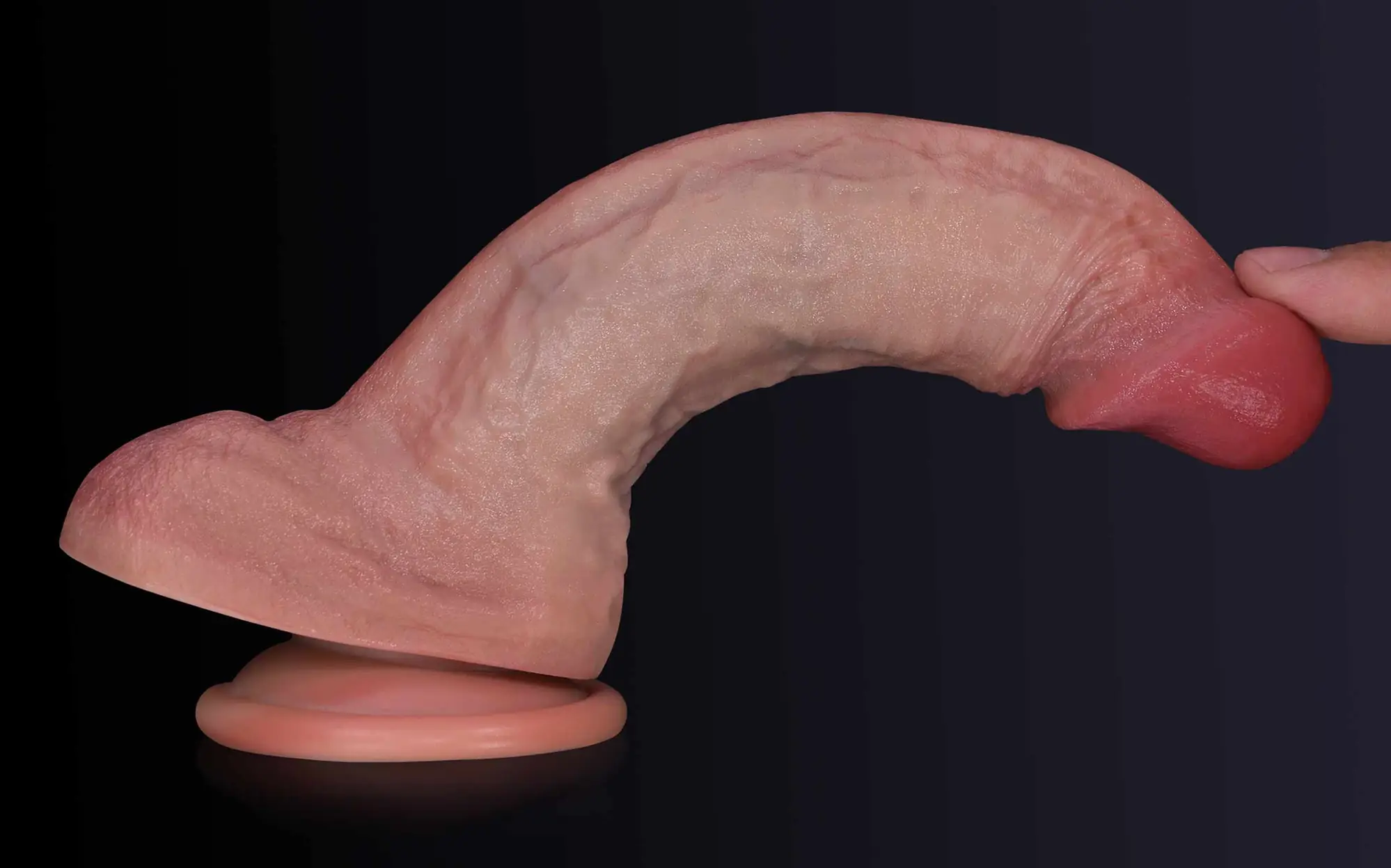 A sculpted, naturally swollen glans with a soft, blush-toned finish for true anatomical realism.